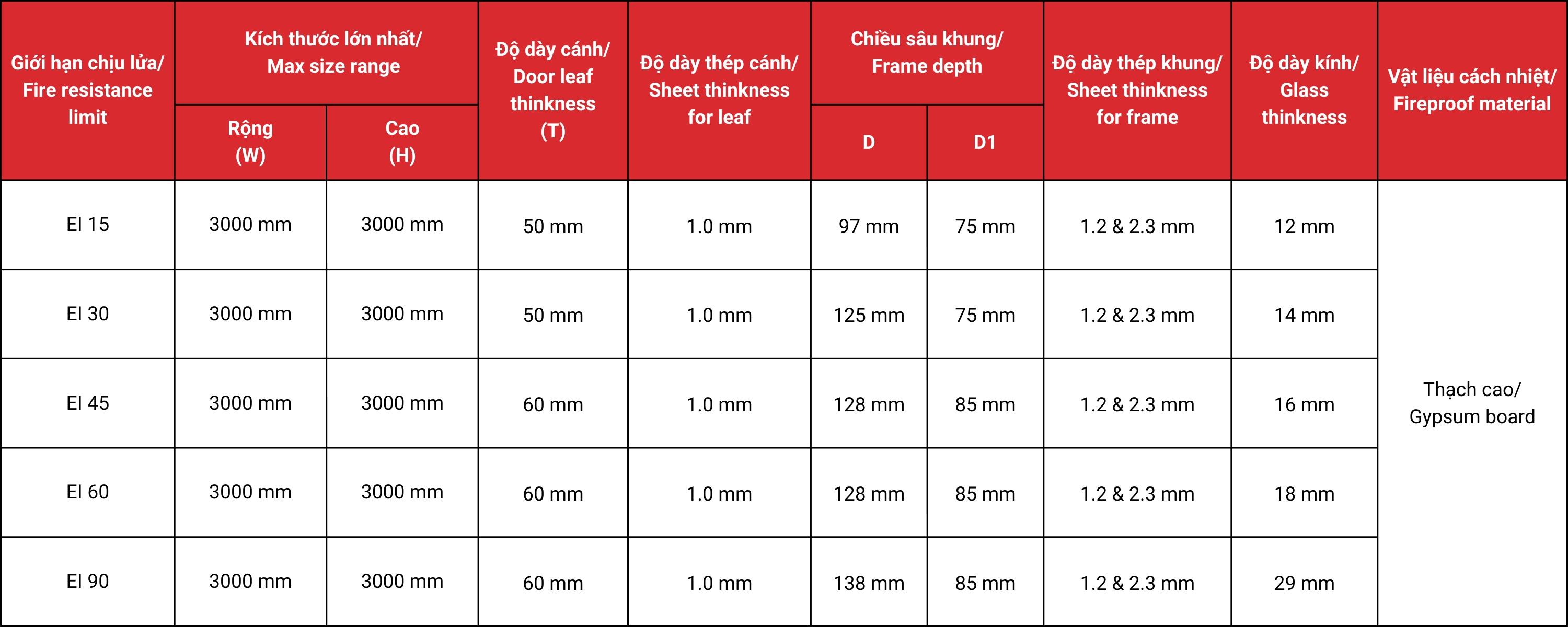 ✅ Chống cháy vượt trội theo tiêu chuẩn EI15 đến EI90